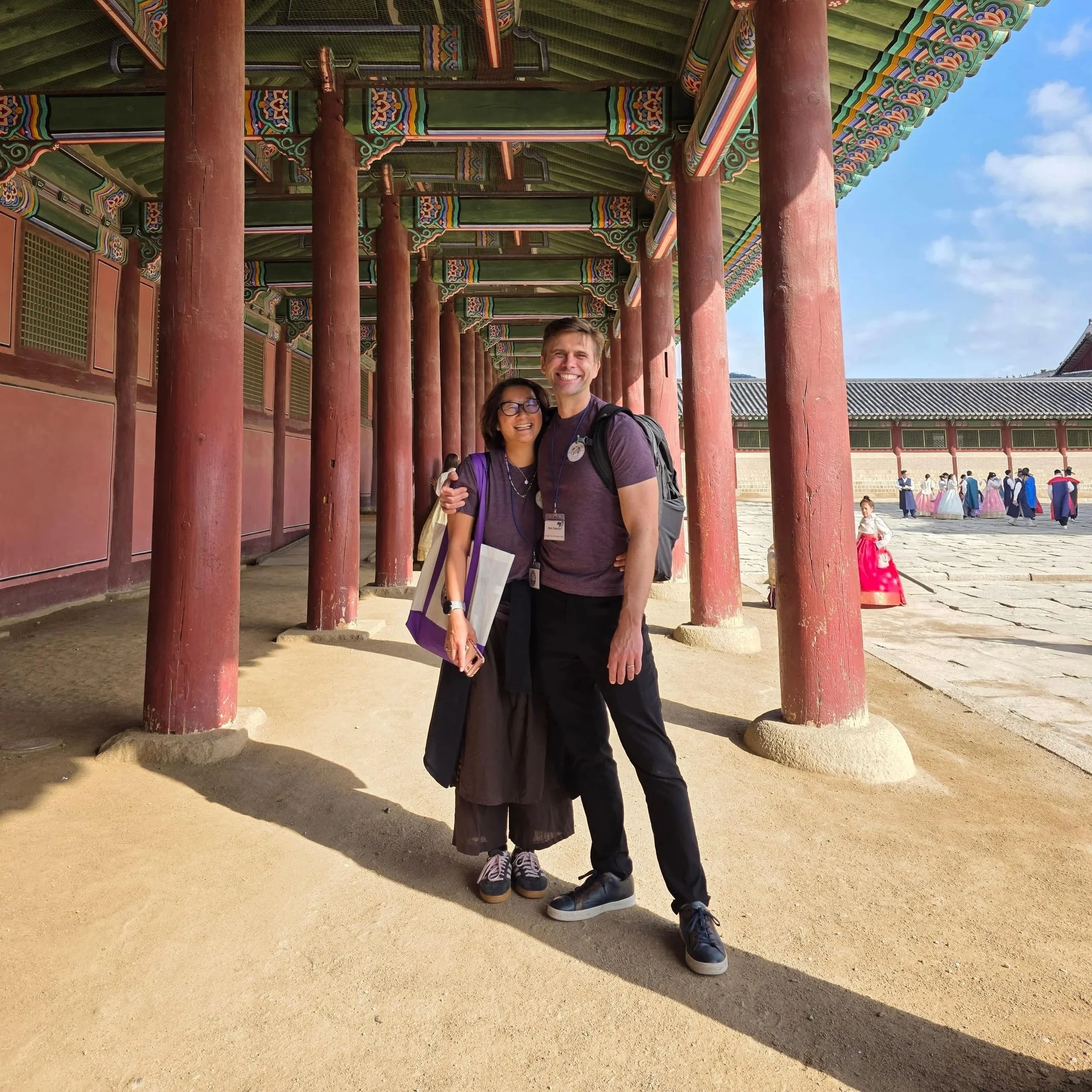 Ben and his wife, Tanya, a Korean adoptee, at Gyeongbokgung Palace in Seoul.