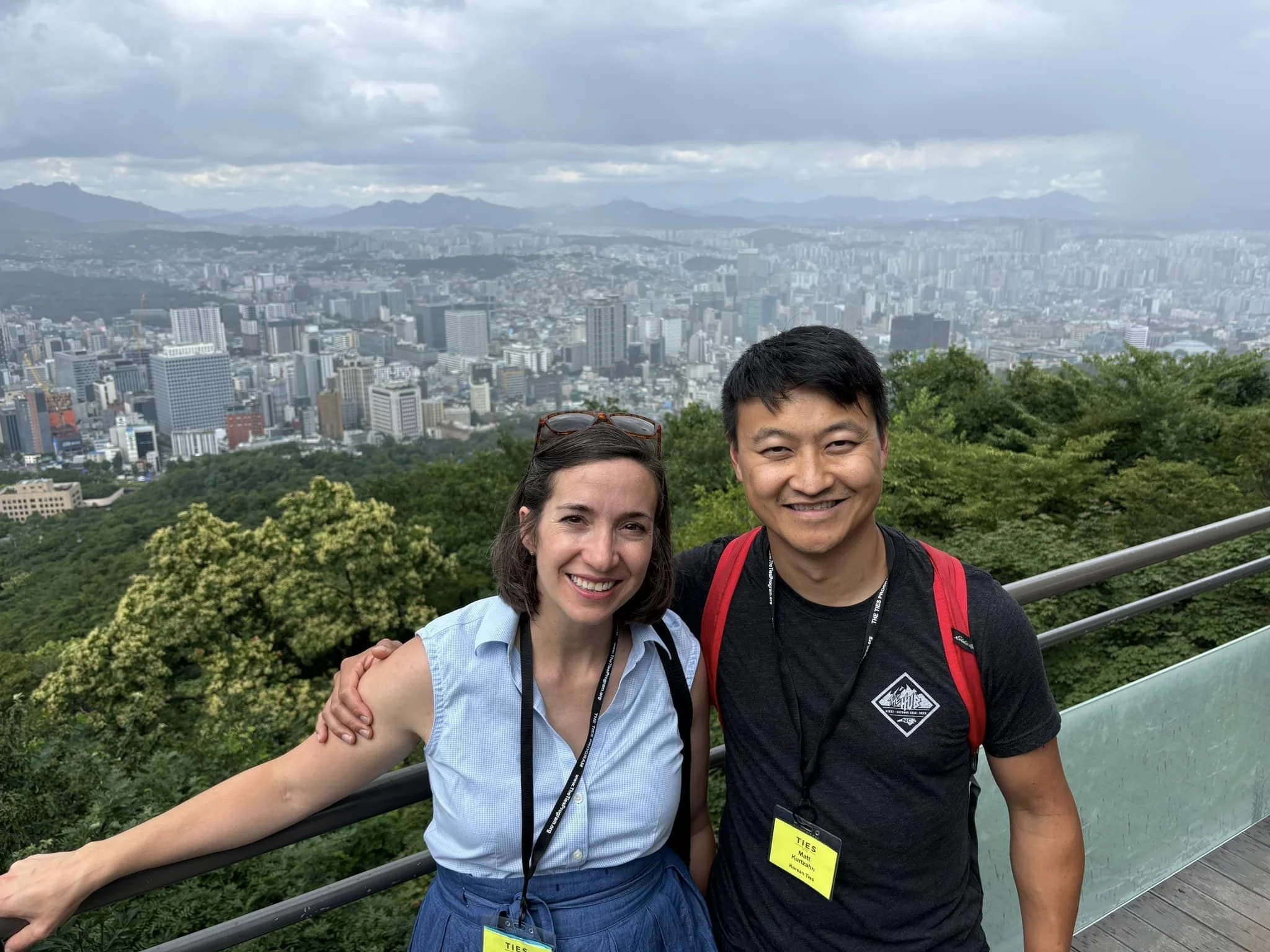 Sarah and her husband Matt, a Korean adoptee, at Namsan Tower in Seoul.