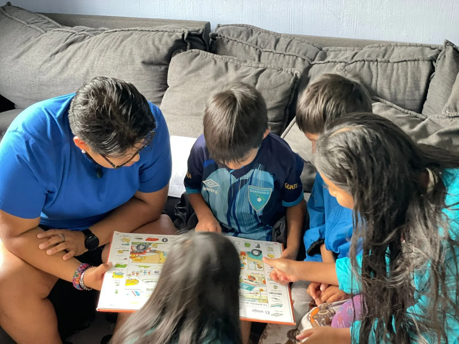 Hazel reads with Guatemalan children.
