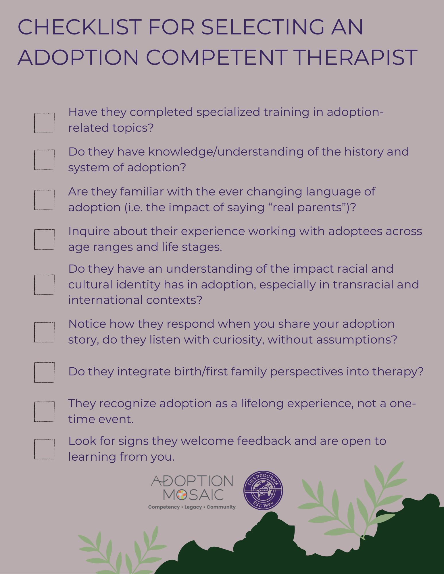 Checklist for Selecting an Adoption Competent Therapist